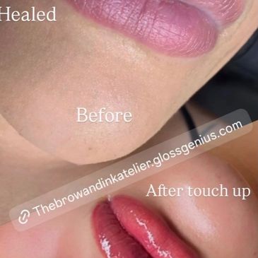 The initial vibrancy of the lip blush will soften by approximately 50% as the lips heal, revealing a beautifully balanced, natural result. Healing typically takes 4–7 days, with swelling resolving within 24–48 hours and minimal to no bruising.