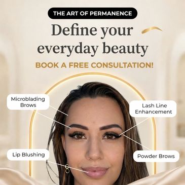 Whether you are considering brow artistry like microbladed or ombre powder brows, or exploring options like luxury lip blush and signature combination brows, this one-on-one appointment is your opportunity to ask questions and discover what is truly right for your face, your skin, and your lifestyle. We also offer eyeliner artistry to enhance your eyes beautifully.